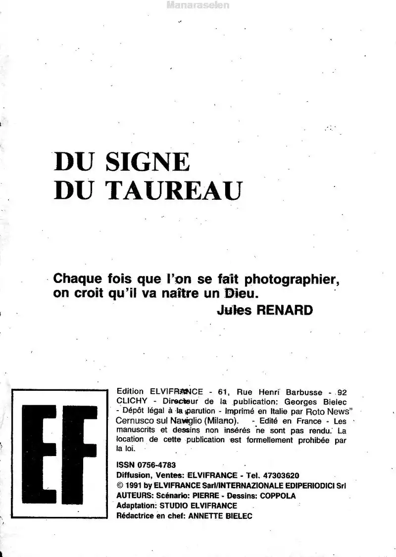 Elvifrance - Histoires noires - 139 - Du signe du taureau