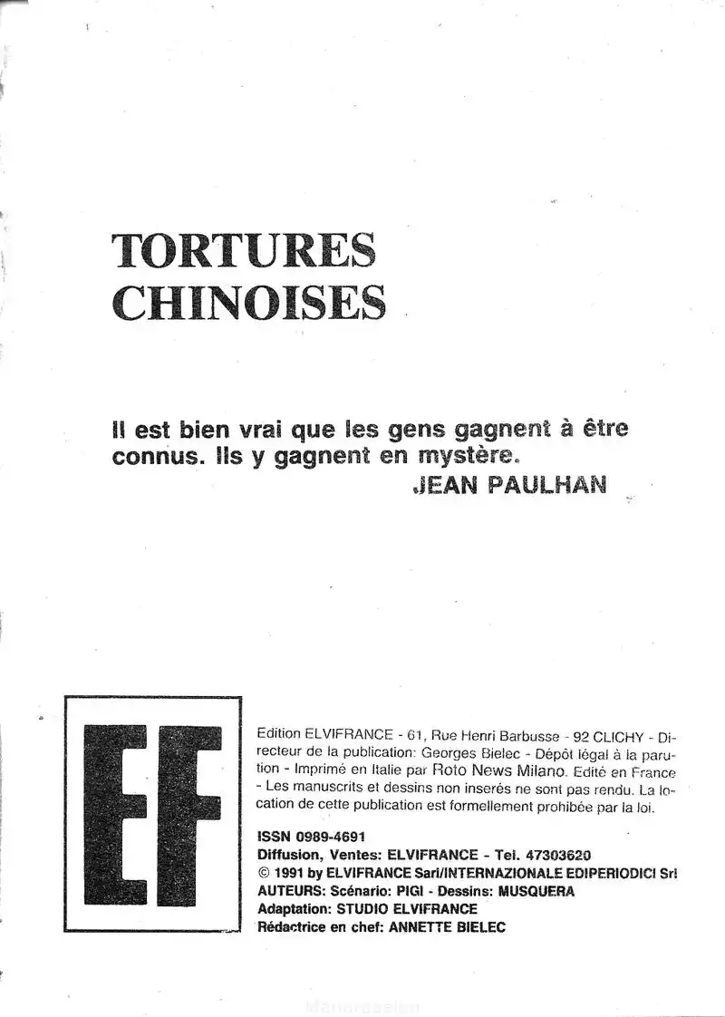 Elvifrance - Série violette - 030 - Tortures chinoises chris