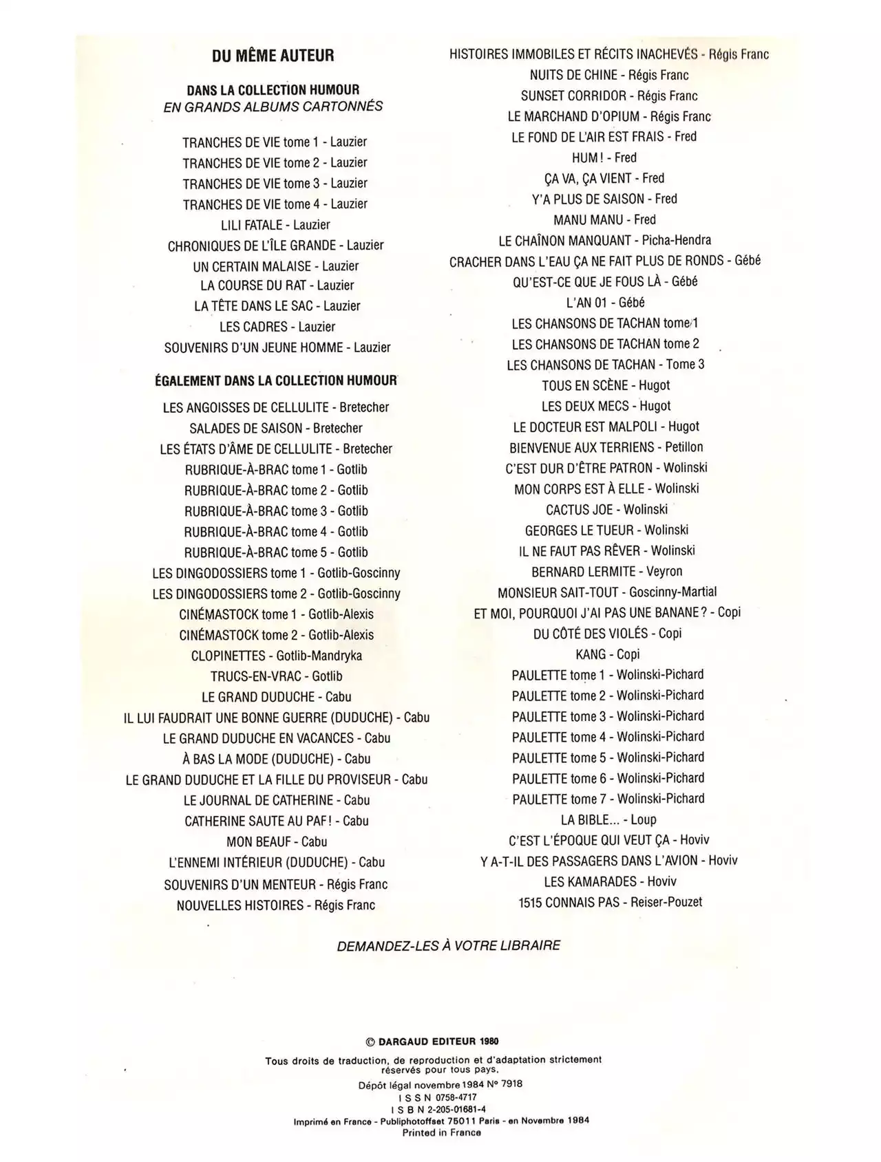 La tête dans le sac gerard lauzier