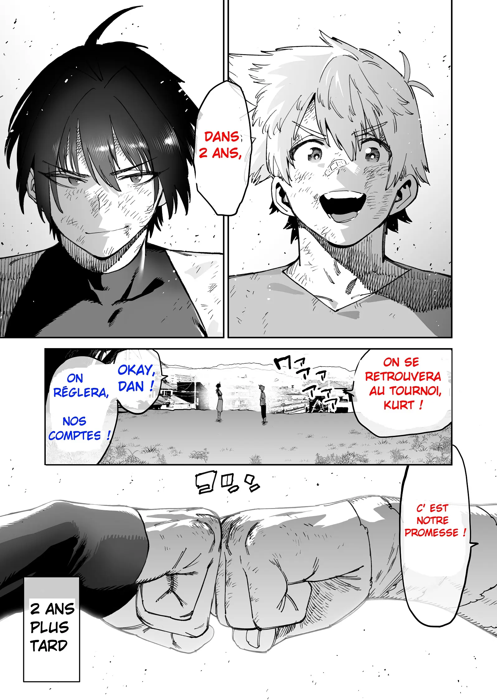 L'histoire de deux amis qui se sont séparés en se promettant de devenir plus forts, mais qui se sont retrouvés après 2 ans en tant que fiottes.