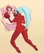 Kneesocks, la licorne démoniaque, est la pièce maîtresse de la collection. Si Panty et Stocking incarnent la salope céleste, Kneesocks est l’avatar de la pute infernale. Ce mélange de licorne et de salope démoniaque est une invention diabolique, capable de tout : gangbangs interstellaires, gangbangs multiples, gangbangs avec des démons, et même gangbangs avec des humains. Son apparence ésotérique cache un appétit sexuel sans limites, comme on peut le voir dans ces images où elle chevauche des bites, se fait enculer, ou partage sa chatte avec plusieurs partenaires. Son cul, ses seins, ses jambes – tout est conçu pour exciter, et les parodies hentai n’ont pas lésiné sur les détails.